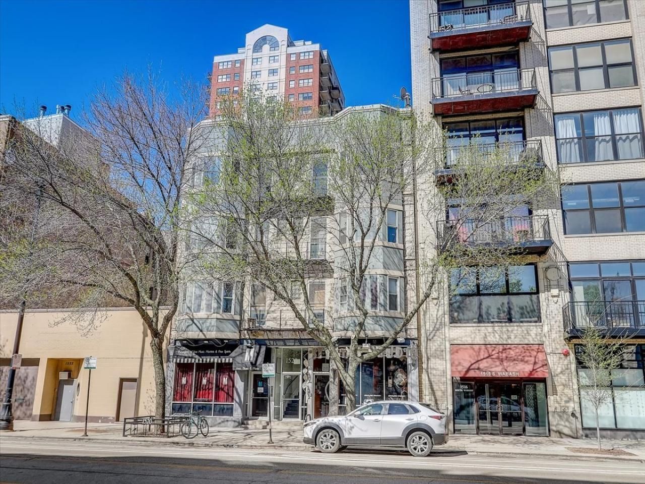 4th floor walk up vintage beauty. Well maintained but could use some updates. Bring your vision and ideas. East facing unit with dramatic high ceilings, exposed brick, hardwood floors and in unit laundry. The extra wide living/dining area and kitchen is great for entertaining. Large open kitchen with tall cabinets and eat island. Spacious primary bedroom with en-suite bathroom. The 2nd bedroom is also sizable and has ample closet space. Additional storage and bike room on the main level. Deeded exterior parking space available for $15,000 additional. Amazing location- close to lake, restaurants, shops and public transportation.