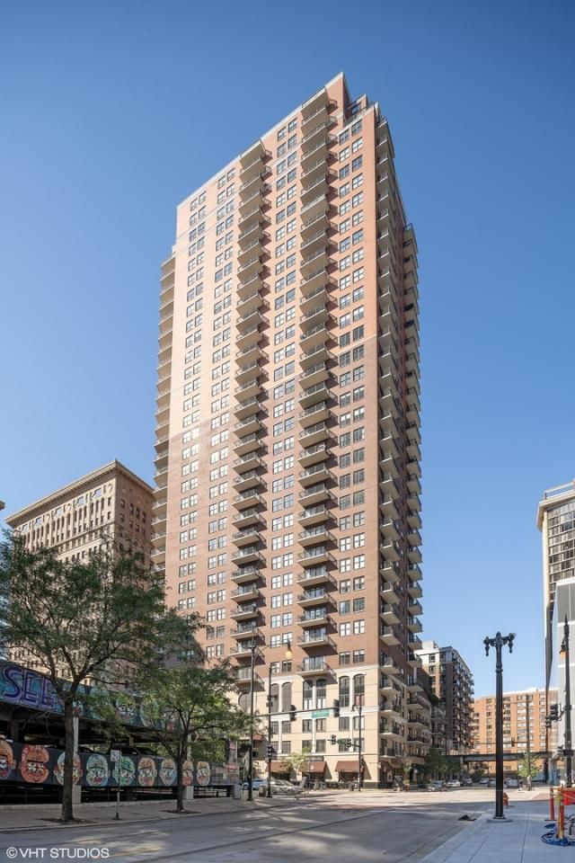 Lake and City views from every room of this rarely available high floor corner unit! Largest 2bed+den/2bath floor plan in the building with split layout and tons of natural light. Welcoming extra wide foyer with oak hardwood floors throughout. Granite and stainless steel kitchen plus TWO large balconies; one facing North overlooking skyline and the second facing East with Lake views! Large primary suite with double vanity, separate whirlpool tub and standup shower. Good size second bedroom with full guest bath. Den currently used as dining space can be used as an office or easily converted into a 3rd bedroom. Plenty of closet space and sizeable laundry room. Full amenity building with fitness center, sundeck, hospitality room and 24 hour door staff. Garage parking available for $35k.