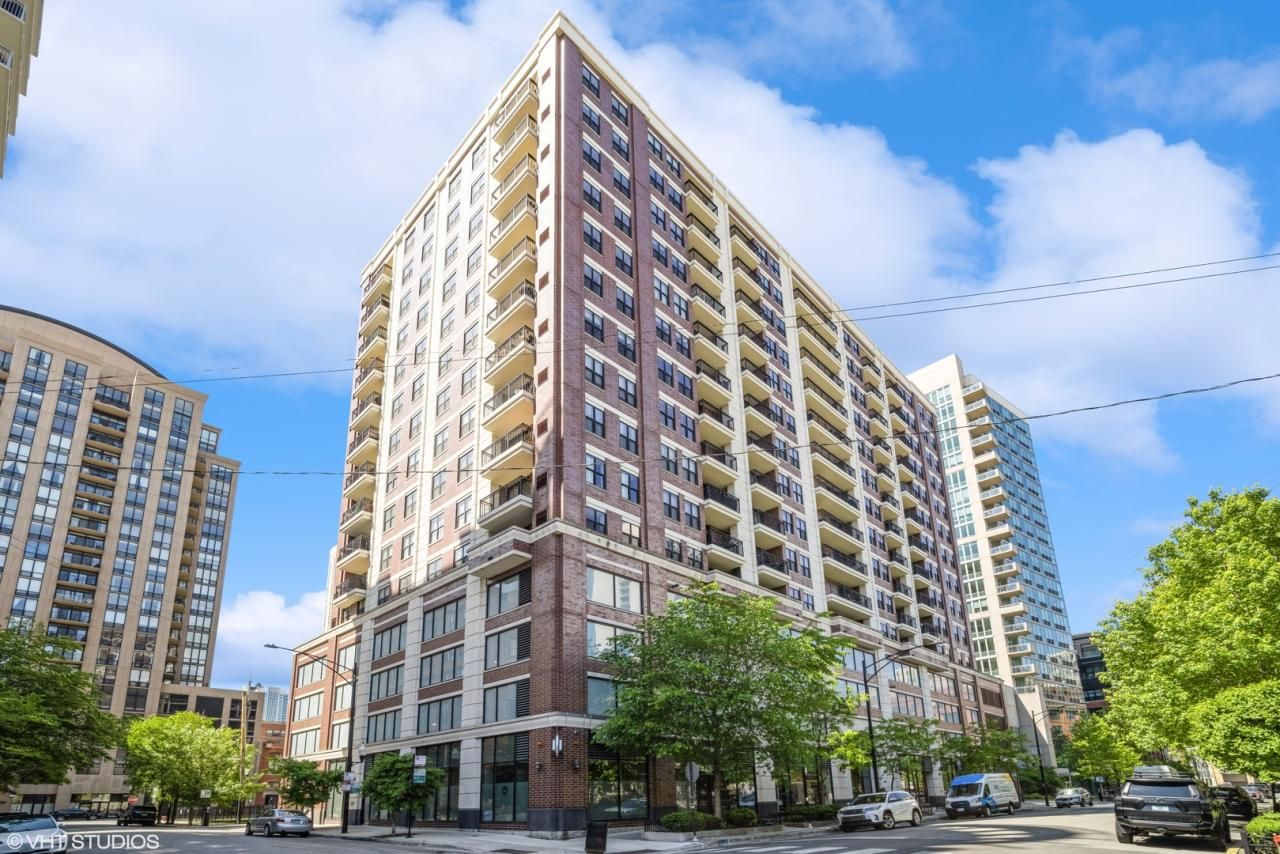 Bright and spacious one bedroom with expansive city views! The unit is flooded with a lot of natural light and features an open floor plan with floor to ceiling windows and hardwood floors throughout. Stunning kitchen includes custom cabinetry with ample cabinet space, granite countertops, a breakfast bar and stainless steel appliances. The bathroom features a double vanity, whirlpool tub and separate stand up shower. Large bedroom with oversized windows and custom closet built out with Elfa Storage. A private large balcony perfect for grilling with exceptional views, in-unit laundry, storage locker, fitness room and a heated garage parking space #59 make this a perfect place. A wonderful boutique building that is meticulously maintained and has a 24-hour door staff. HOA includes cable, internet, heat, and gas. Unbeatable location, close proximity to Chicago River, Montgomery Park and Larrabee Park, Starbucks, Whole Foods, Trader Joe's, city's best restaurants and bars, East Bank Club, train stations: Red/Brown/Purple CTA lines and Metra. Easy access to highways I-90/94, I-290 and I-55. You won't want to miss this beauty!
