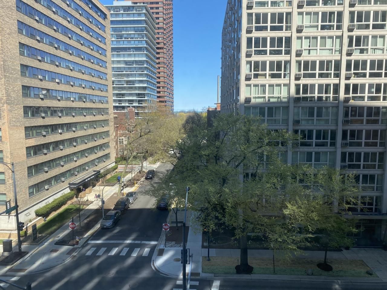 Highly desirable 2-bed/2-bath unit in East Lakeview Neighborhood. Unit features hardwood floors throughout, s/s appliances, 42 cabinets, & updated baths with waterfall faucets and HEATED floors. Open floorplan with plenty of room for full living and dining. Views of Tree-lined streets and glimpses of lake Michigan from every room. Building amenities include exercise room, party room, laundry room, and sundeck with grills. GoGrocer conveniently located within building. Steps from public transit and lakefront. Storage cage INCLUDED in price!