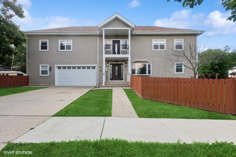 This beautifully updated home offers 4 spacious bedrooms and 3.1 bathrooms, including a luxurious primary suite with a walk-in closet and a spa-like bathroom featuring a double vanity, soaking tub, and separate shower. Enjoy soaring 10-foot ceilings and a modern kitchen with an island, bar seating, and an eat-in area-all designed for today's lifestyle. Thoughtful updates include two furnaces and A/C units (October 2022), a 75-gallon hot water heater (October 2022), new window treatments throughout, and LED recessed lighting that brightens every room. The second-floor hallway opens to a charming balcony, while the upstairs laundry room adds convenience. A finished basement provides additional living and entertaining space, and the fenced-in corner lot offers both privacy and outdoor enjoyment. This home perfectly blends style, comfort, and function.